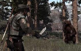 Another way of killing the bear is shooting it a couple times then on horseback using your melee knife to kill it.
